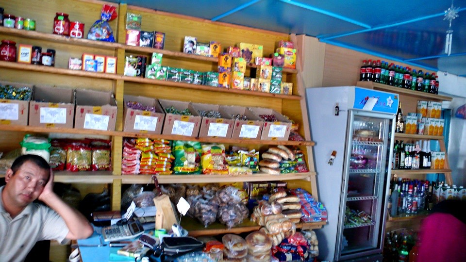 Filling up my water bottles, and drinking some water, I spoke in Kazak with poor pronunciation “where is there a shop?”