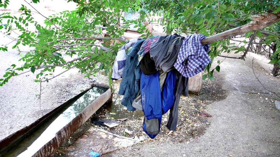 The clothes were not washed in soapy water, but it was better than not washing at all.
