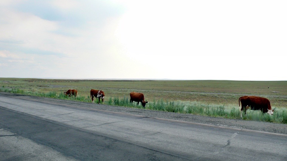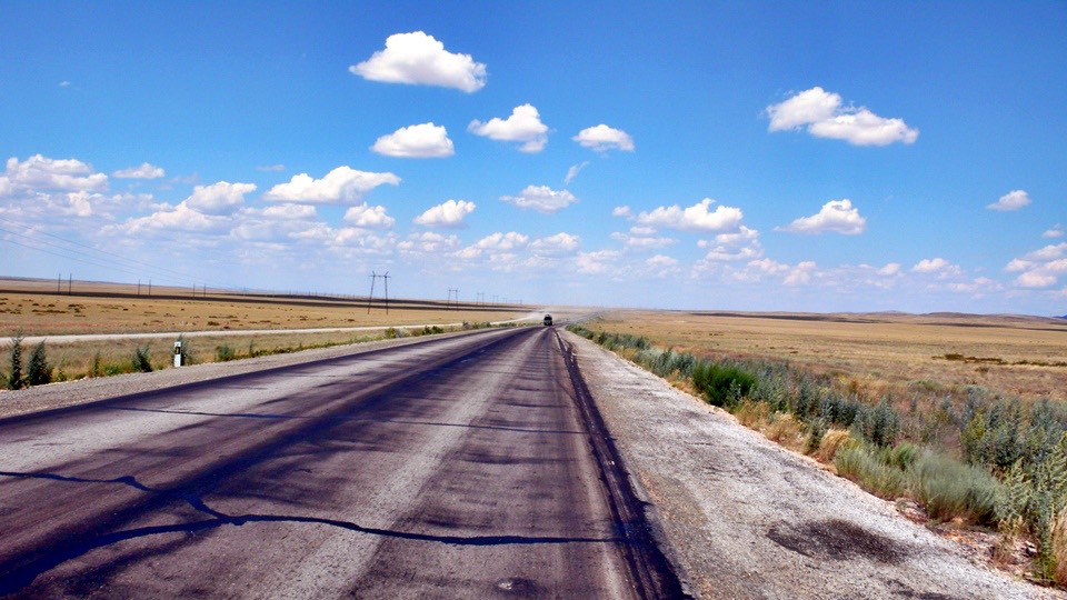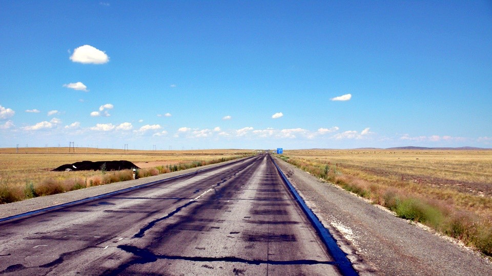 The same old scenery along the road day after day that one stretch of road up and down in the stark steppe,