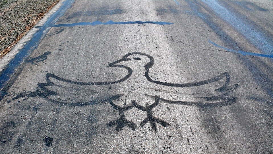The road workers must have been bored to death during their work, in addition to painting the road marking with tar,
