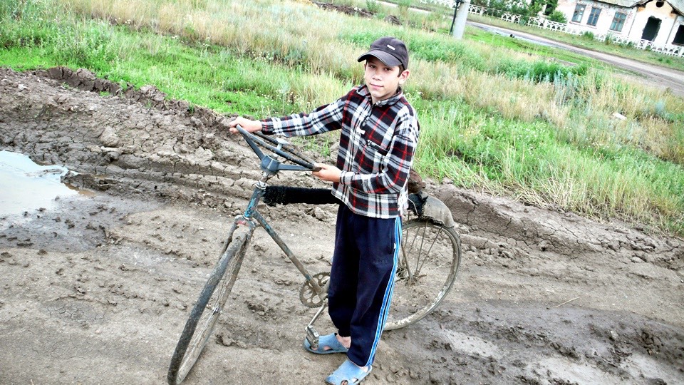The dirt road leading to the village became slippery and muddy after the rain. I was about to fall.