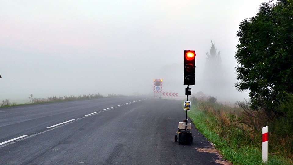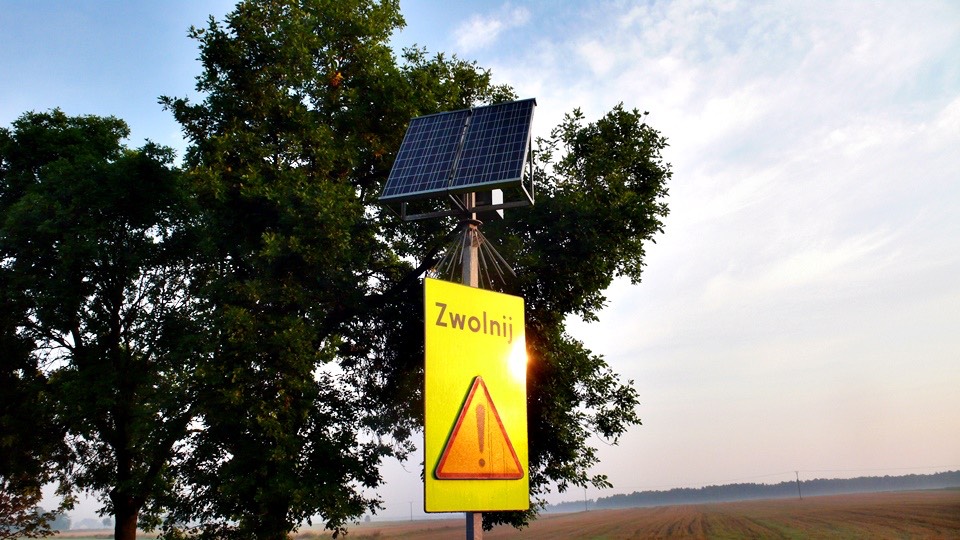 Solar energy powered traffic signal, even though Polish people use English alphabets,