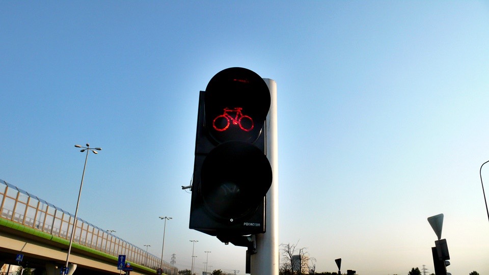 The light signal shows red, but even if it shows green I would be afraid to ride in there