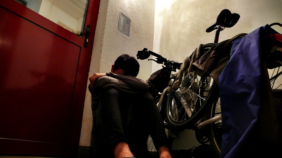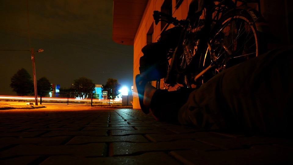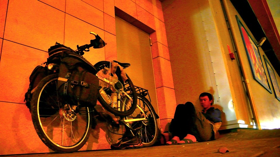 So I pulled the bike inside, and I sat on the floor by the entrance and tried to sleep.