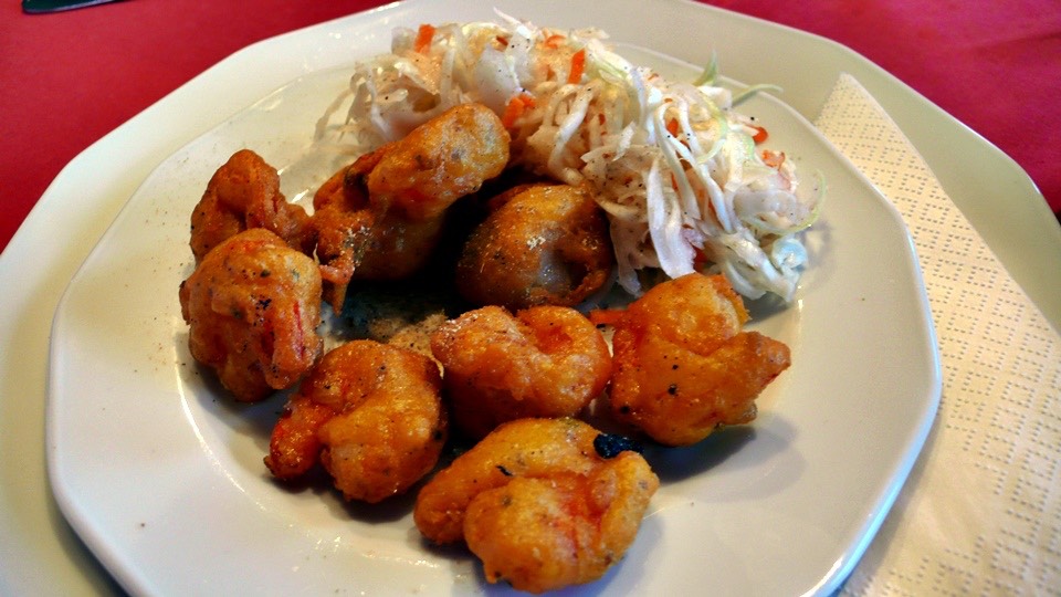 The appetizer is this fried shrimp, this is pretty good.