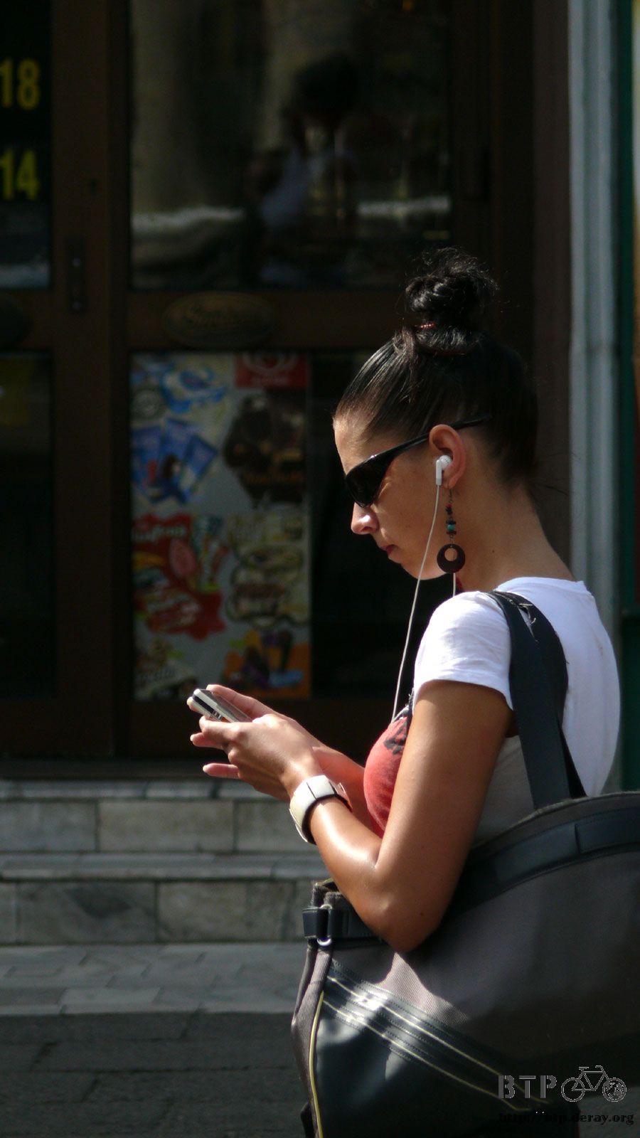 Most of the Poznana female students wear a cap and pony tail, and carrying backpack and earphone.