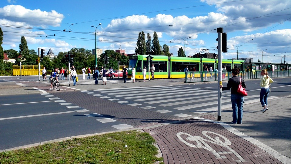 The weather is extremely great. The roads used by cars, cable car, and bikes all have marked out on the street.