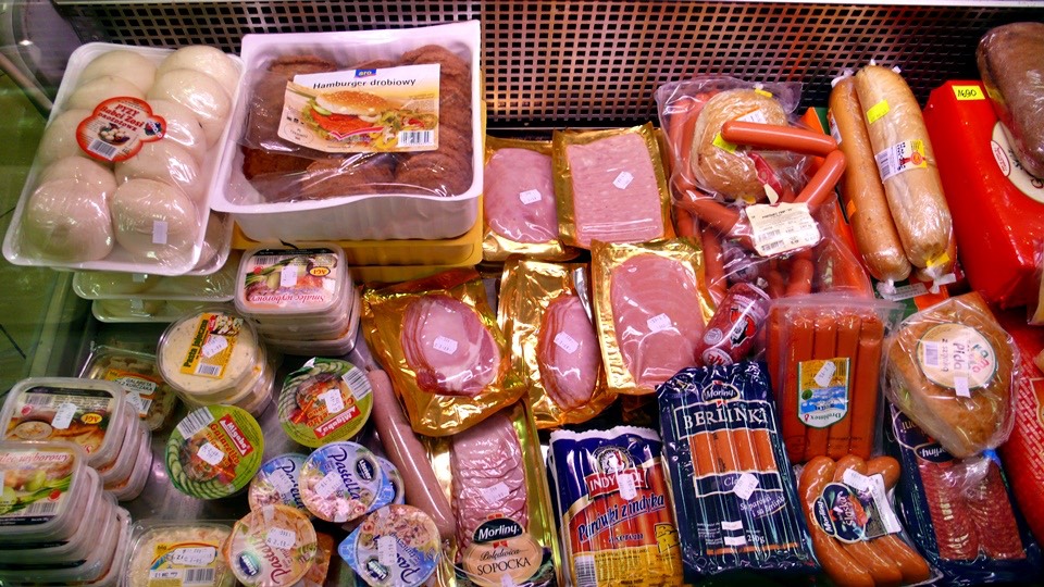 This is the processed meat section in the frozen section. It is rare to see beef in Poland.