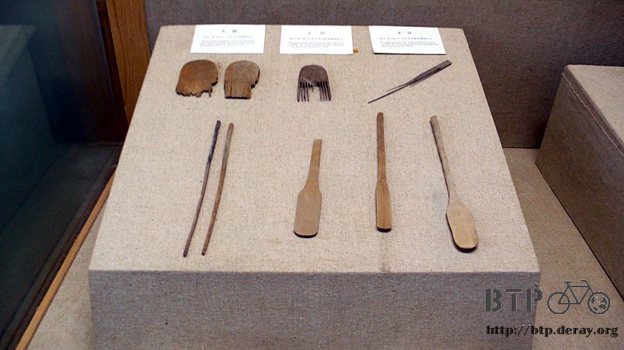 一千年歷史的筷子和湯匙,左上角那個比梳子還要細密的東西,是用來刷蝨子用的。