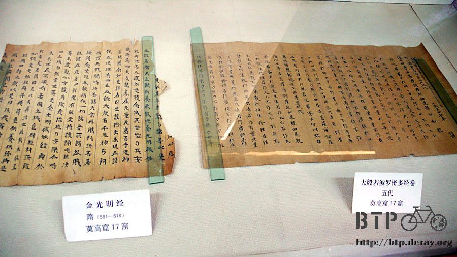 這是莫高窟藏經閣裡五萬多卷經書中少數被保留下來的殘破經文,珍貴的部分都已經在國外的博物館或是私人收藏家手裡了。