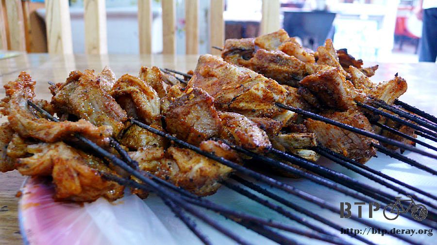 晚餐在敦煌夜市裡吃烤羊排,今天搭出租車的時候,司機是敦煌人,我問他有什麼地方料理好吃的?