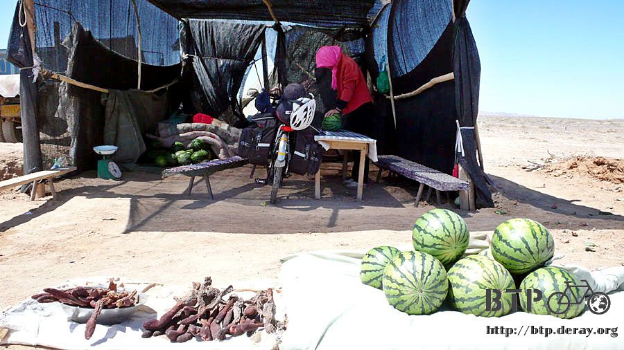 快要打瞌睡昏倒在路邊之際,看到路旁有幾個用黑色圍布搭建起來的小店,靠近一看原來是賣西瓜的。