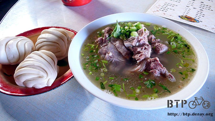 餐廳裡就播放了卡拉OK的VCD,聽著奇怪的歌吃下今天第一次正餐,終於不是在單車上解決了。