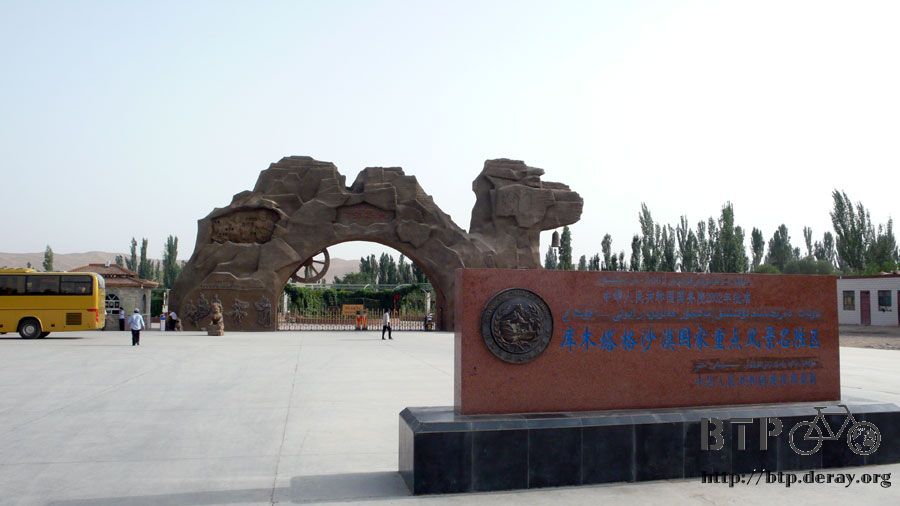 進去參觀要門票,之前已經去過鳴沙山,所以這邊到過門口就算來過了,裡頭就是庫木塔格沙漠,有沙雕和人工湖。