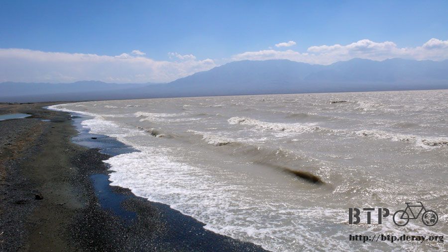 越往湖邊的方向走越能確定這是一座湖泊,波濤洶湧的湖水不停的拍打著岸邊。