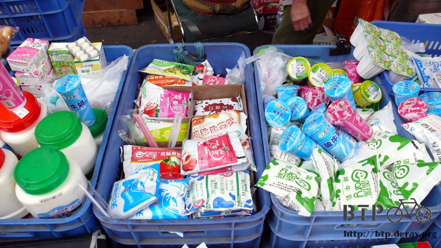這個很像台灣菜市場的養樂多媽媽,都是賣一些牛奶類的製品。