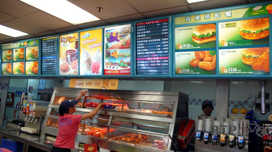 國際炸雞連鎖店,在中國營業、價錢跟在台灣幾乎一樣,但是以當地的收入來看,這邊真是很貴的消費。