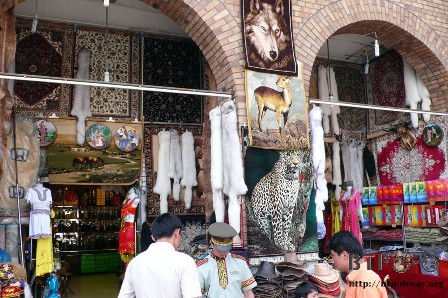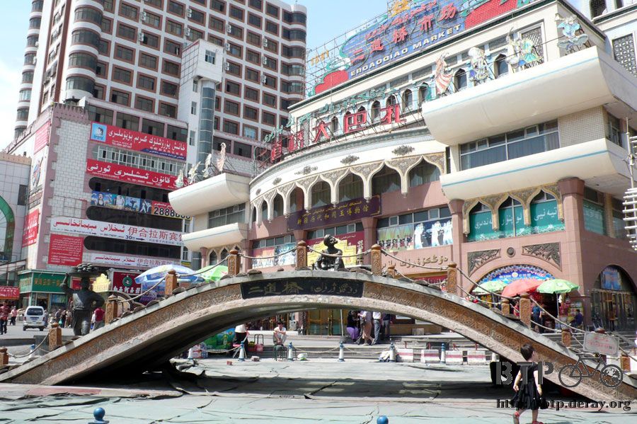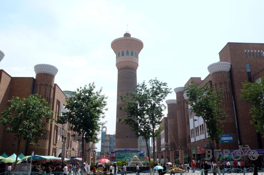經過二道橋之後再往南走,就會到一個有著高聳圓塔的國際大巴扎廣場,週邊都是賣各式商品的店家。