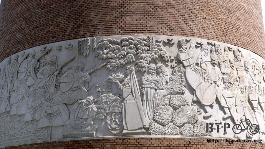 大圓塔底下有一圈的雕刻。,各種不同的民族風情在這都看的到。