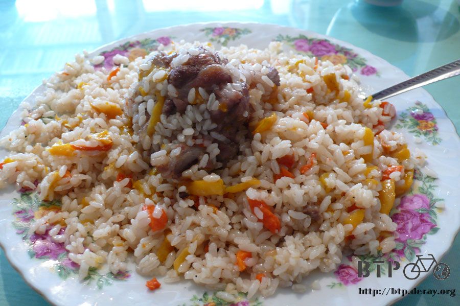 就跟老闆和善的說我要吃飯,來一份抓飯吧,他的臉色才轉回和悅。