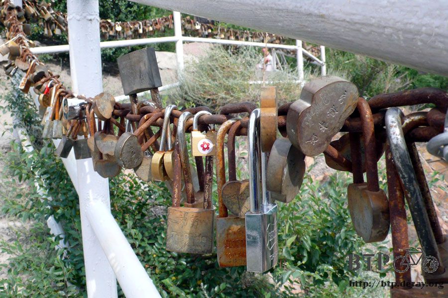 旁邊的鐵欄杆上繫上了數不清的各式小鎖,想必是有什麼樣的意義,是情人百年好合還是事事心想事成呢?