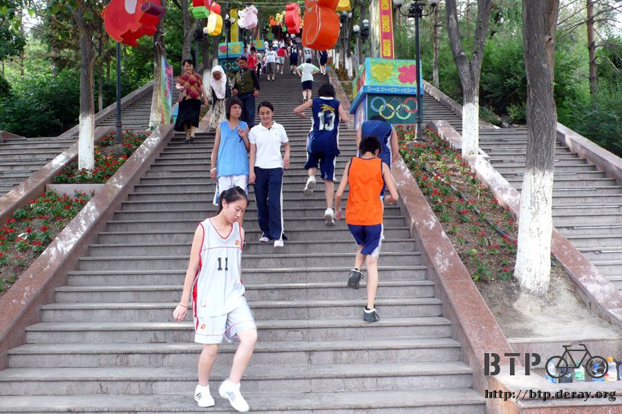從北門進來都是斜坡,往南門下去則都是階梯,很多練體育的學生都在這邊練習單腳跳階梯,動作很靈活,我本來想看會不會有人摔倒,但是我失望了。