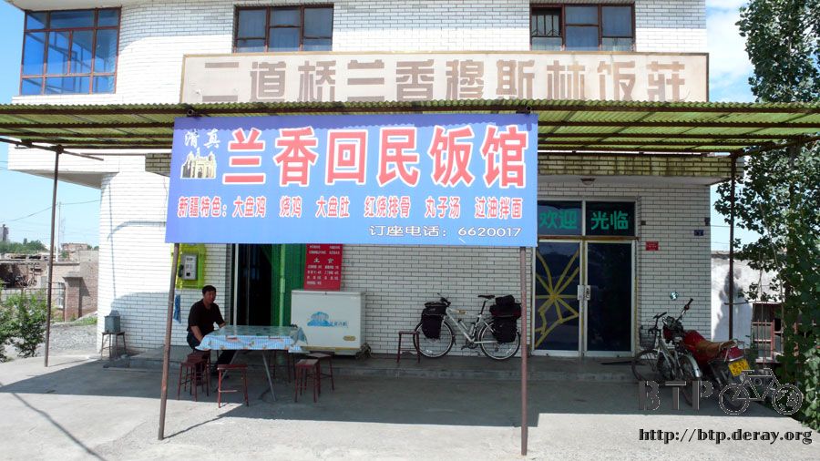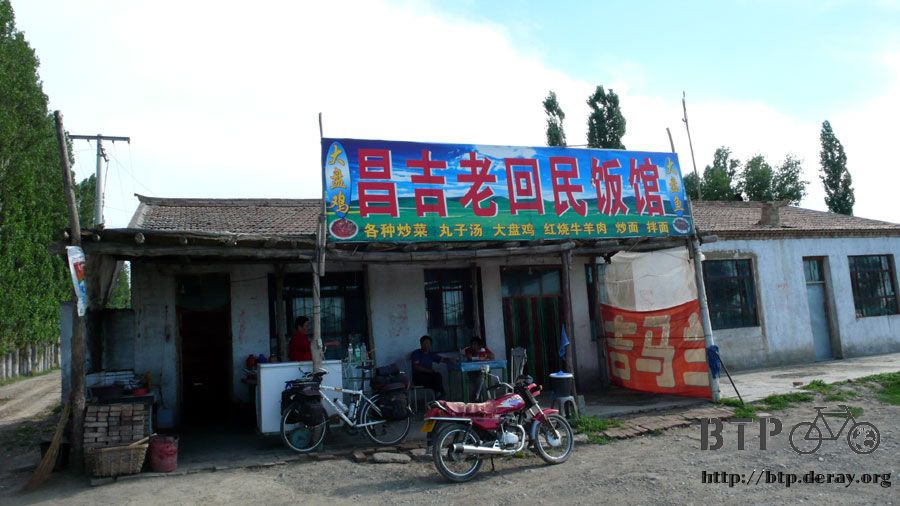 在沙灣的郊區,一間不起眼的回民餐廳吃炒麵,看來不騎到奎屯是真的沒地方能讓我住宿。