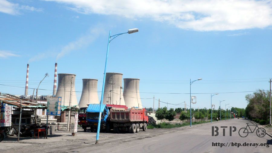 從大丰鎮開騎車,中午就輕鬆抵達瑪納斯了,這邊開始的城鎮,裡面都會有好大好大的煙囪,像是城鎮的附屬品一樣。