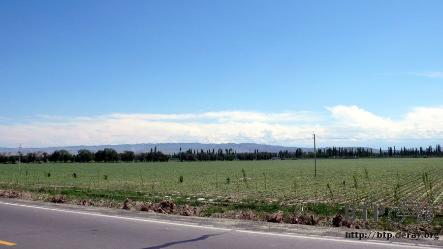 決定往下騎,但是也不強迫一定要騎到奎屯,現在都是綠地,只要一出現可以住宿的地方那就住下吧,隨遇則安。