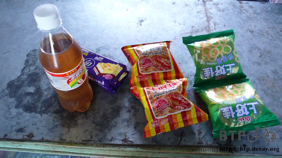炒麵上桌之前去雜貨店補充一點零嘴,因為包包裝了新的補給品之後已經裝不下零食了,新買的這些餅乾只好放在外套的口袋裡面。