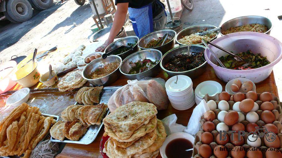 除了拉客人很激烈之外,反映在競爭上的一點就是價錢,看起來很像自助餐的早餐店,那些小菜類的東西都是免費自助的。