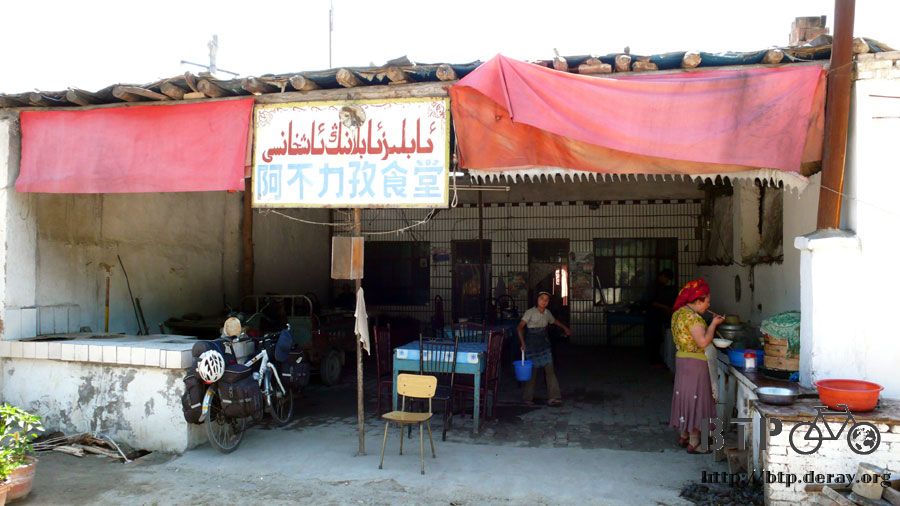 離開烏蘇之後再騎一個多小時,終於有點肚子餓想吃午餐,現在不喜歡在熱鬧的地方,或是餐廳接連開的地方吃飯,