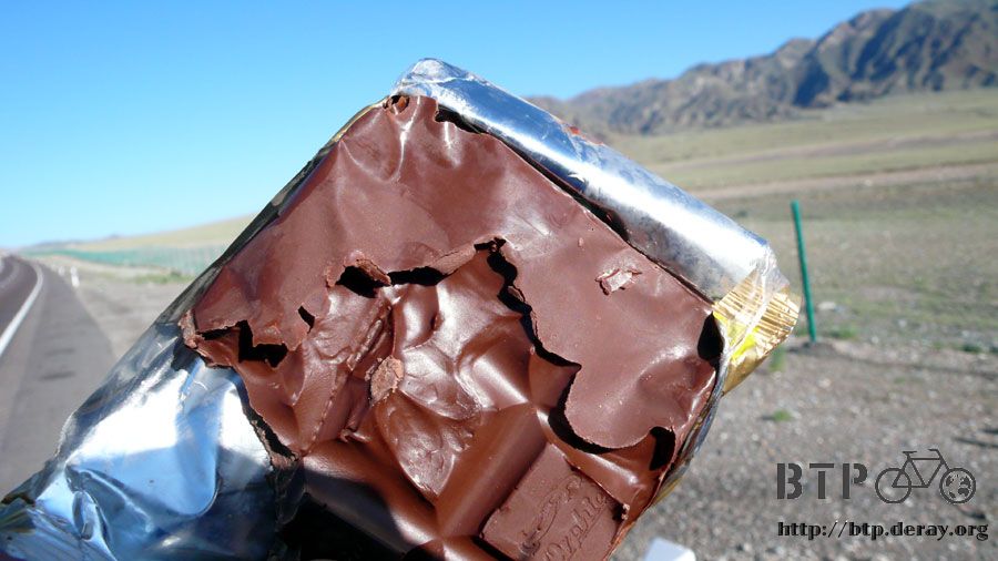 早餐什麼也沒吃,今天維持體力的食物就是被太陽熱到溶解,晚上又冷到凝固的巧克力,這一塊的災情比較沒那麼嚴重,還看的出原本的形狀。