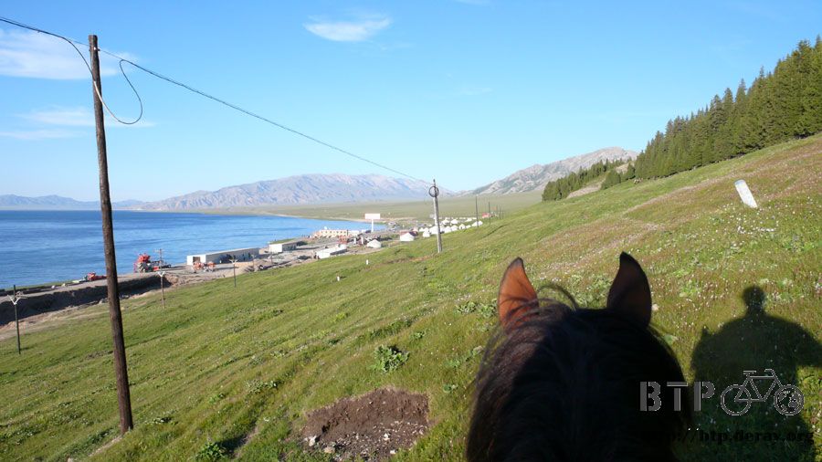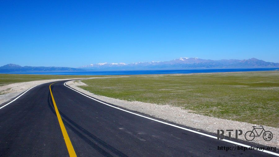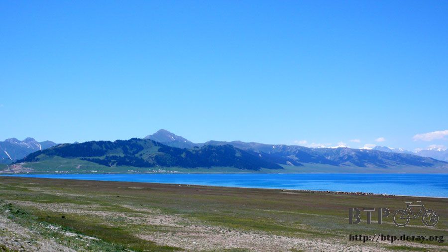 往湖區的路鋪的很好,湖岸邊的草原很像薩爾達傳說裡的海拉爾平原,前面那個賽里木湖就是海拉爾湖。