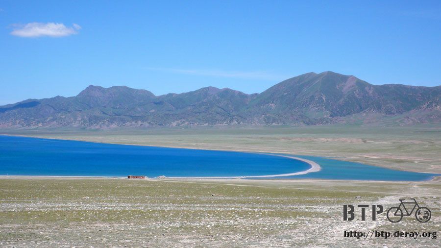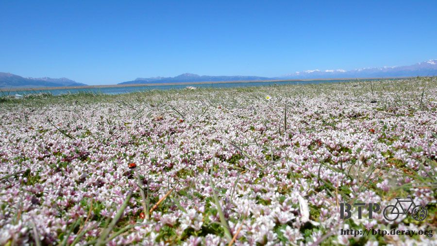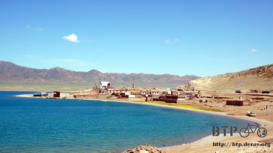 沿著湖是平路混著下坡,又是順風,和早上騎車的樣子簡直是完全兩樣情,輕輕鬆鬆的騎了一段路,看到山腳下搭了好多帳篷、蒙古包。