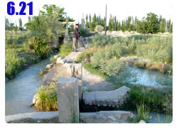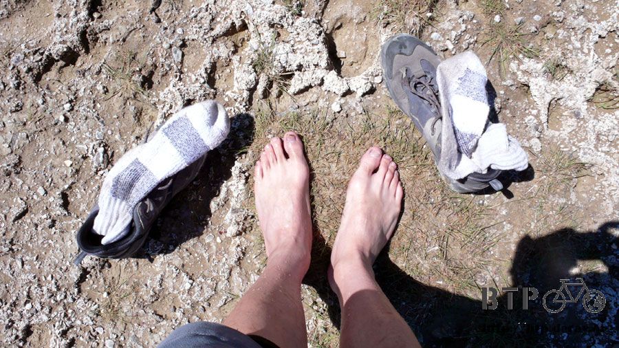 走了幾公里,發現這堤防是無限綿延的,所以就找一段水看起來比較淺,兩邊的距離也比較近的地方,脫下鞋子跨到對面去。