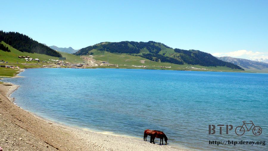 喝著冰涼的可樂,宛如新生,急速的滑下斜坡,從這裡離賽里木湖就不遠了。