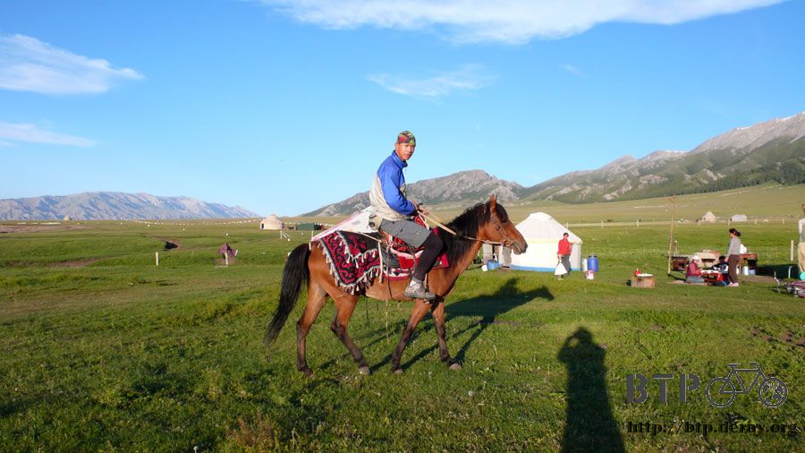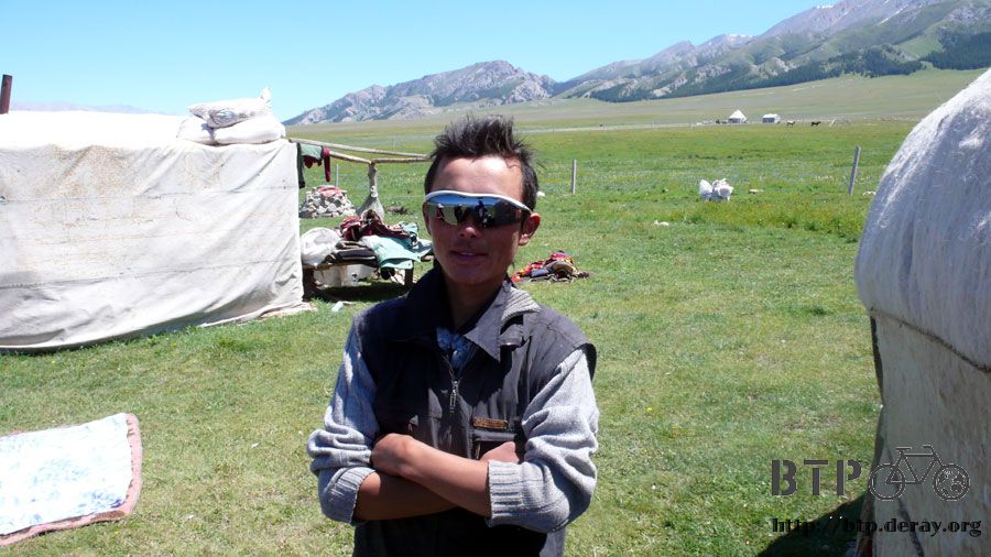 這個好像跟我很熟的人,叫做『阿展瑪』,是哈薩克人,今年十八歲,他跟他的家人一整個夏天一直到十月份都在湖邊營生。