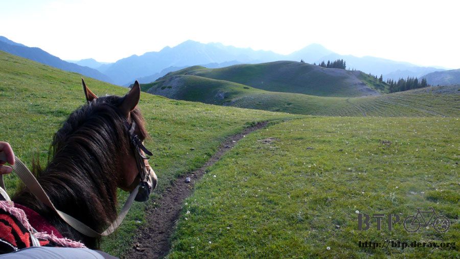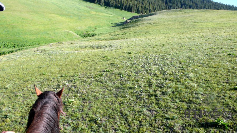進入草原之後就要往上爬坡,騎在馬上真是輕鬆,只要隨便唱幾句歌給馬聽,就算不用踢馬的肚子他也會走。