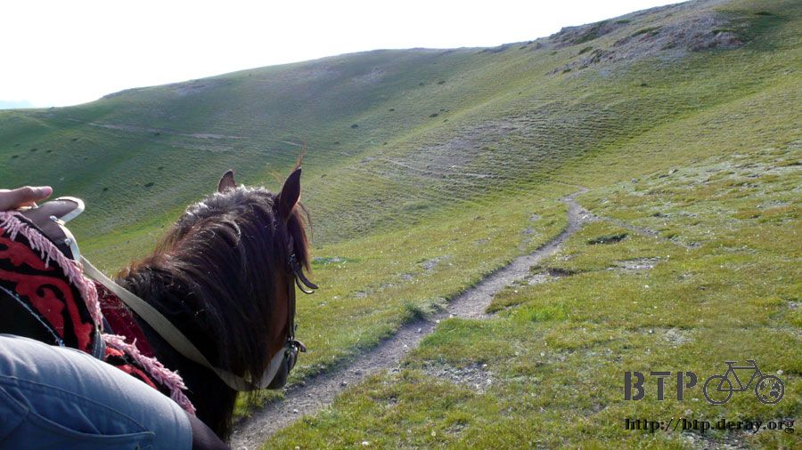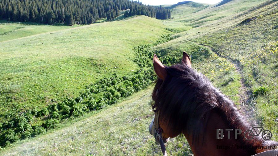 馬道不見得都是在草原中走出來的路,也有沿著陡峭的山坡而行的,蜿蜒的路看起來有點恐怖,還好不用我自己走,只要乖乖的待在馬背上,