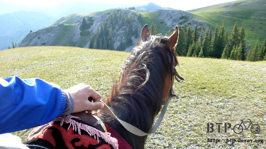 要騎馬繞山頭之前還得交兩塊錢給山頭的主人,這座山頭的草原都是國家分配給他放牧用的,若要騎著馬進去就要交錢,我就當作是當交馬的飼料費。