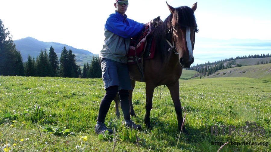 教學完畢,自己騎一匹馬,阿展瑪騎另外一匹帶著我繞山頭,出發!