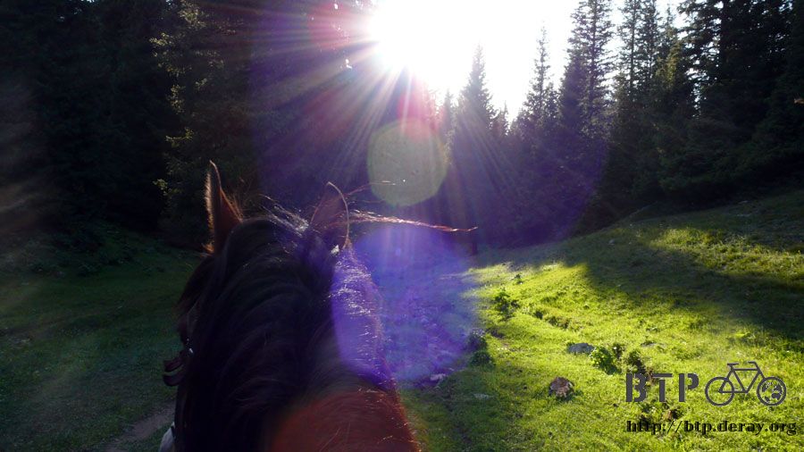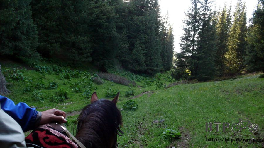 回去的路上要穿過樹林,這個樹林跟剛才阿展瑪帶我走的不一樣,騎馬真是非常快樂的事情。