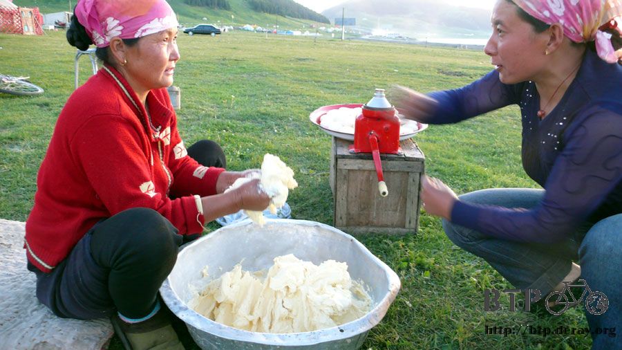 蒙古跟西藏是製作成酥油茶,哈薩克人則是用饃饃沾的酥油吃,像吐司配奶油那樣。