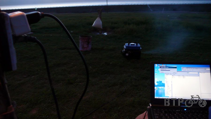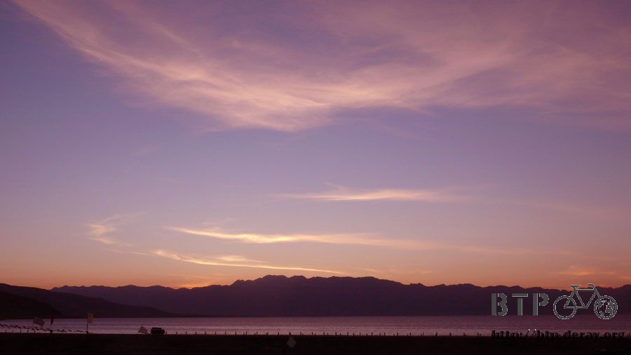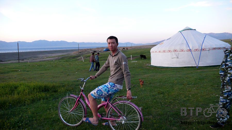 阿展瑪說這車真是好呀!我實在是追不上,就讓他自己揚長而去繞湖,自己穿著睡褲繞帳棚區跑一圈。