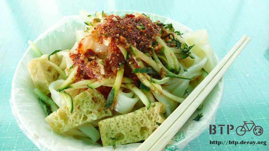 嘴巴依然很痛,過了一整天也吃了消炎藥可是都沒有好轉,肚子餓還是得吃飯,在商貿中心的外面吃一碗涼皮。