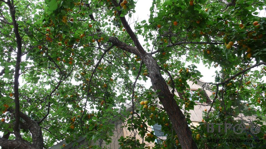 餐桌是露天的,設置在外面的樹下,樹上結了滿滿的杏子,吃飯的時候隨時都會咚的掉一顆下來砸在任何地方。