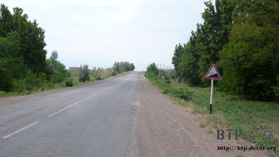 哈薩克的交通牌子很有趣,只要是上坡路,通通都是12度的陡坡,今天遇到的都沒有例外,大概這樣比較方便製作吧。