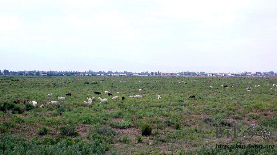 這些羊群後面有房子的建築,這個地方就是昨天再騎三公里就會到的城鎮,因緣際會之下沒有去住,今天就不繞進去了。