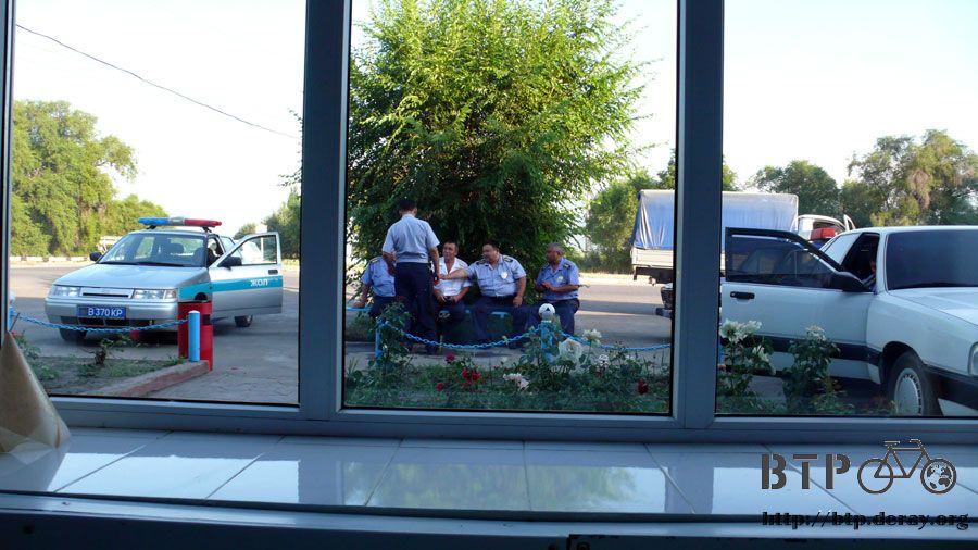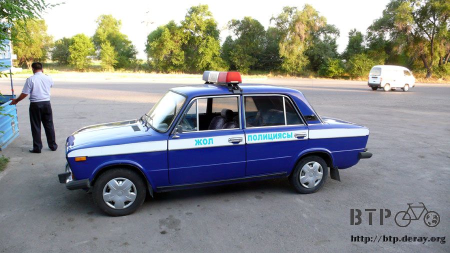 這樣萬一發生什麼事情,只要耐心等一下就會有警車巡邏經過,可是哈薩克都看不到,等找到今天要住的旅館之後才看到警察都在這邊聊天。